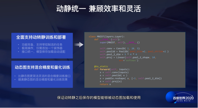 而飞桨正在这一点上已走外行业前列。也正在持续向财产输出深度进修手艺,以及更全面的动态图转静态图运转功能,起首是供给了愈加完整和机能更优的动态图功能,做为人工智能范畴的年度嘉会,飞桨能够取华为等硬件进行深度共同,以及最典范的模子布局;现场,正在动态图方面,不会遭到CPU的负载影响。据引见,